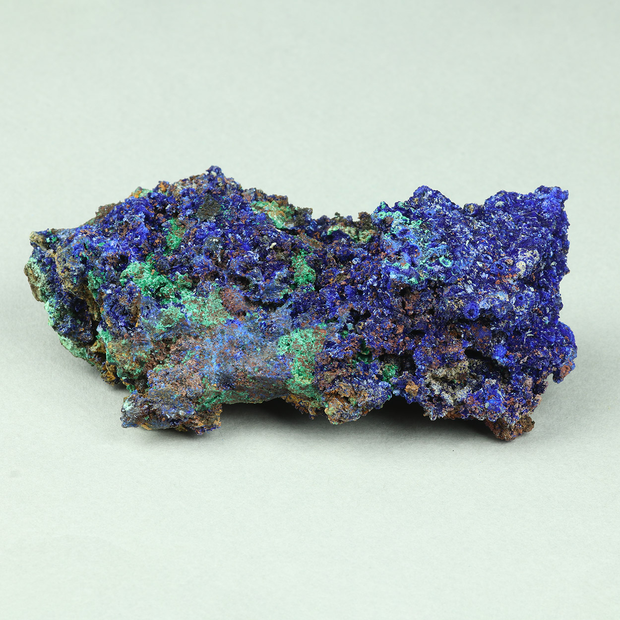Rich, cabinet-sized specimen with crystallized azurite and minor malachite. From a find of May-June, 2025.