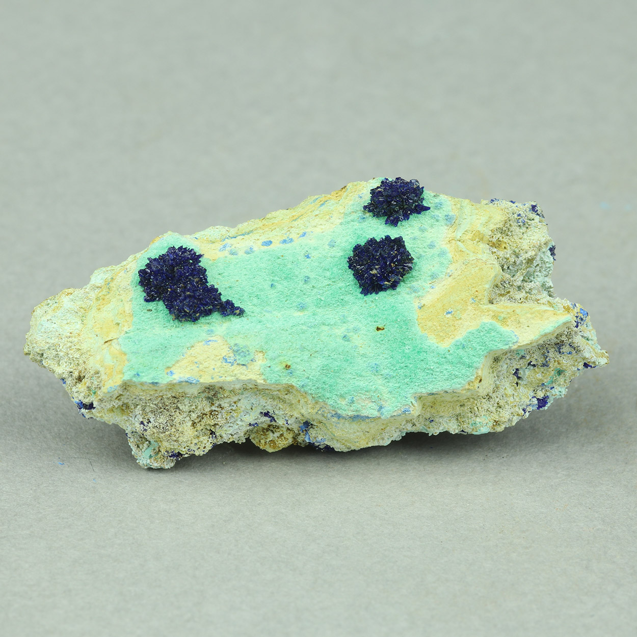 Aesthetic small miniature with crystallized azurite balls on contrasting matrix! Beautiful specimen from a find of May-June, 2025.