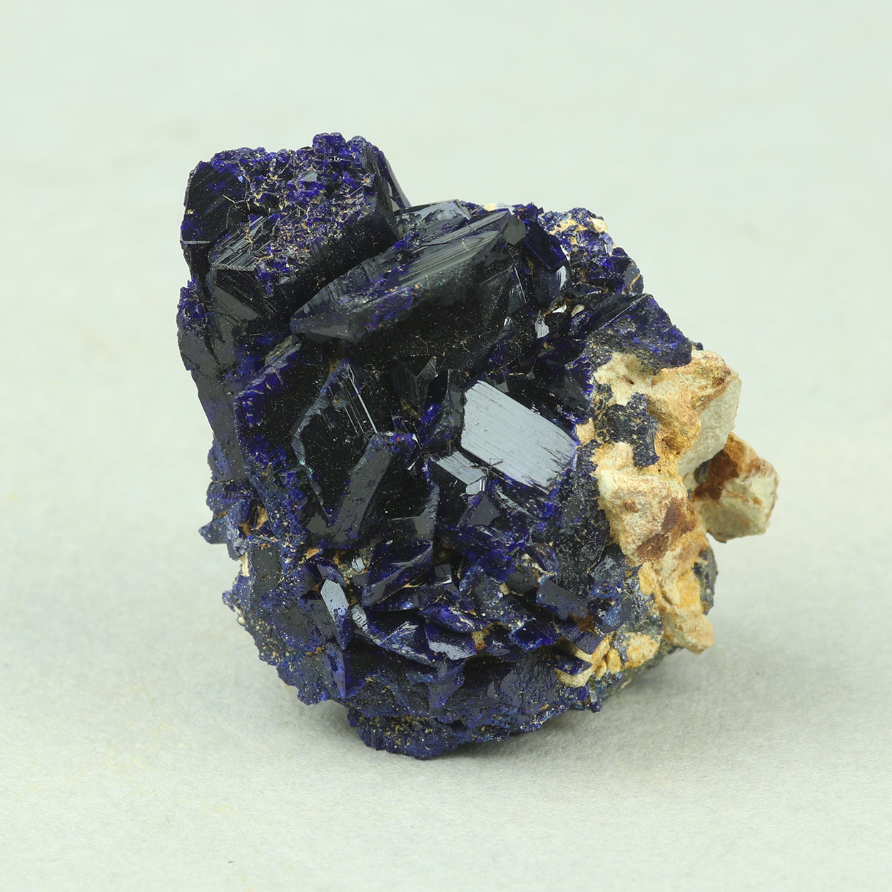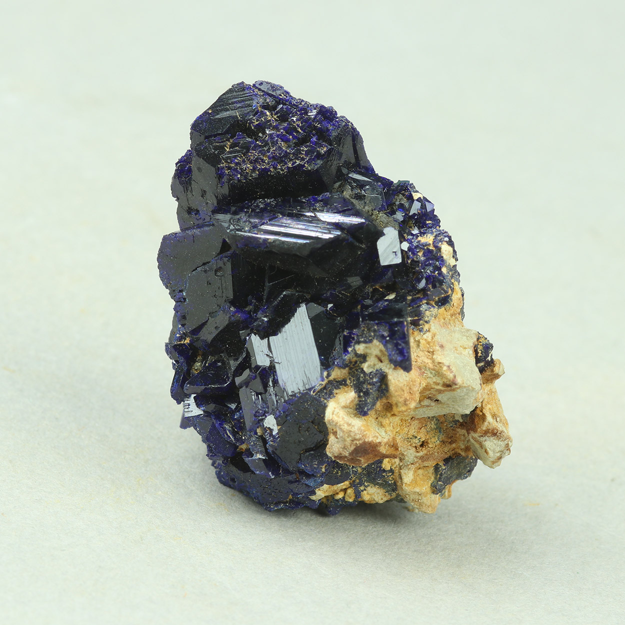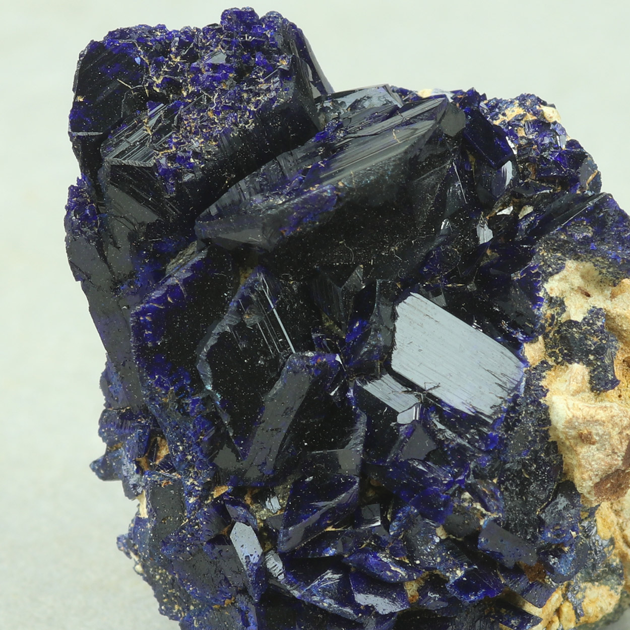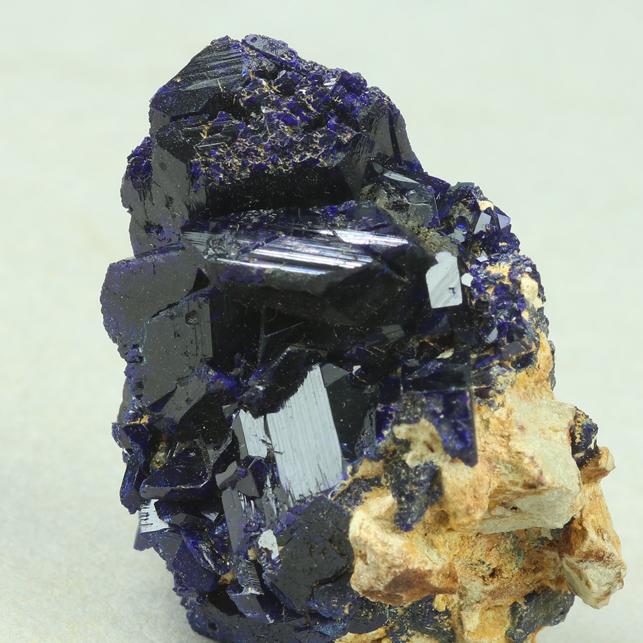Lustrous, well-formed, dark blue crystals of azurite on matrix.