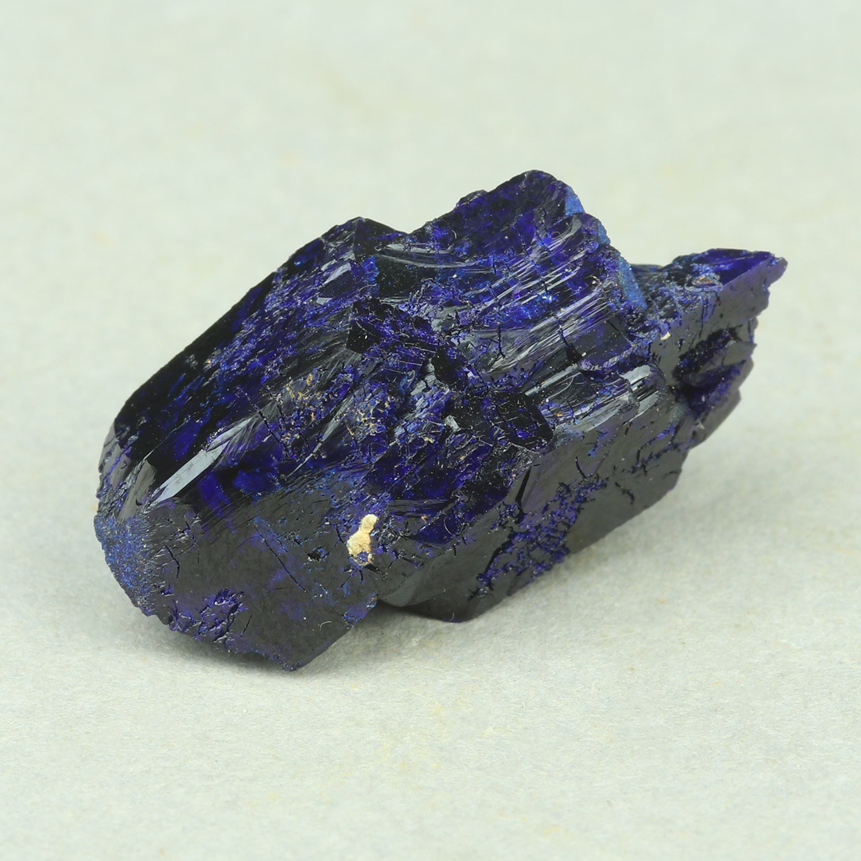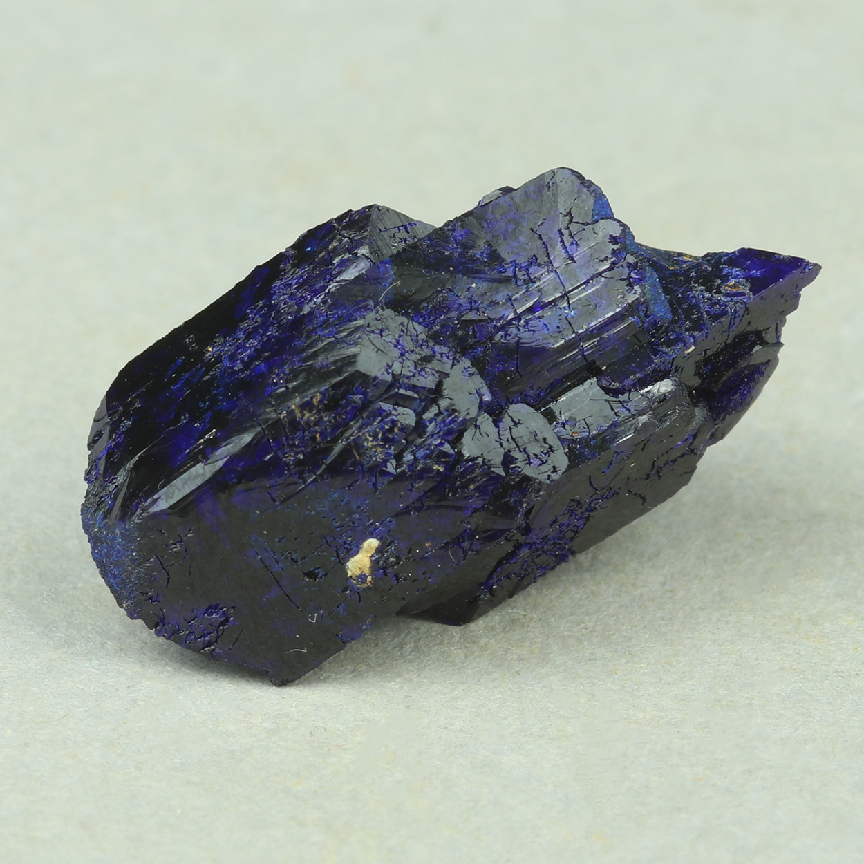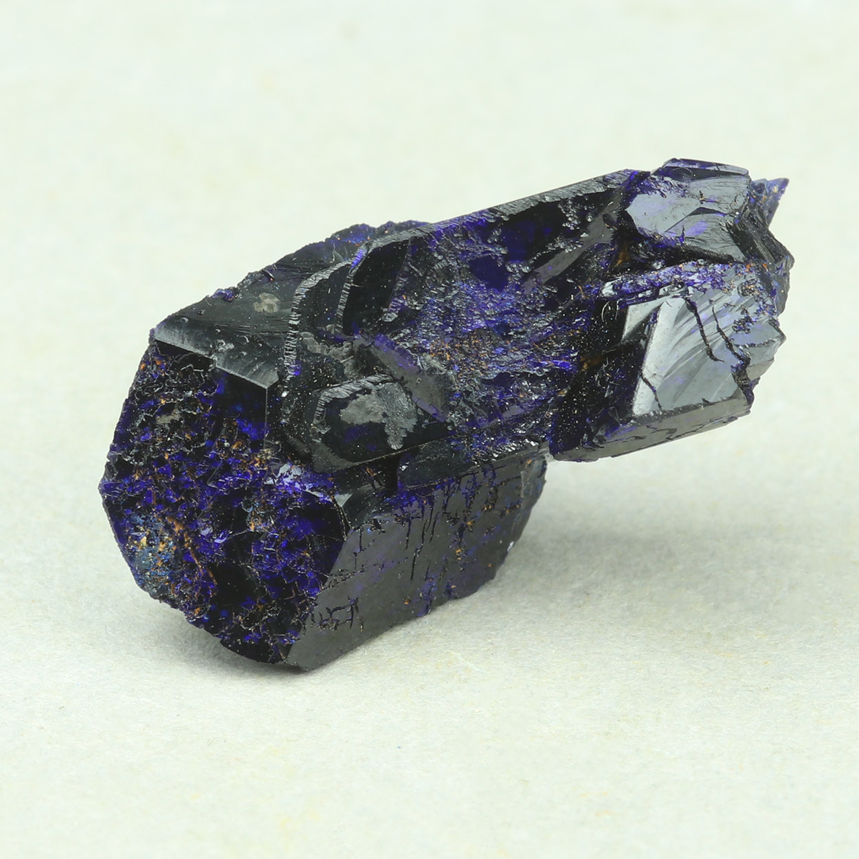 Cluster of sharp and lustrous crystals of blue azurite. A fine thumbnail of the species.