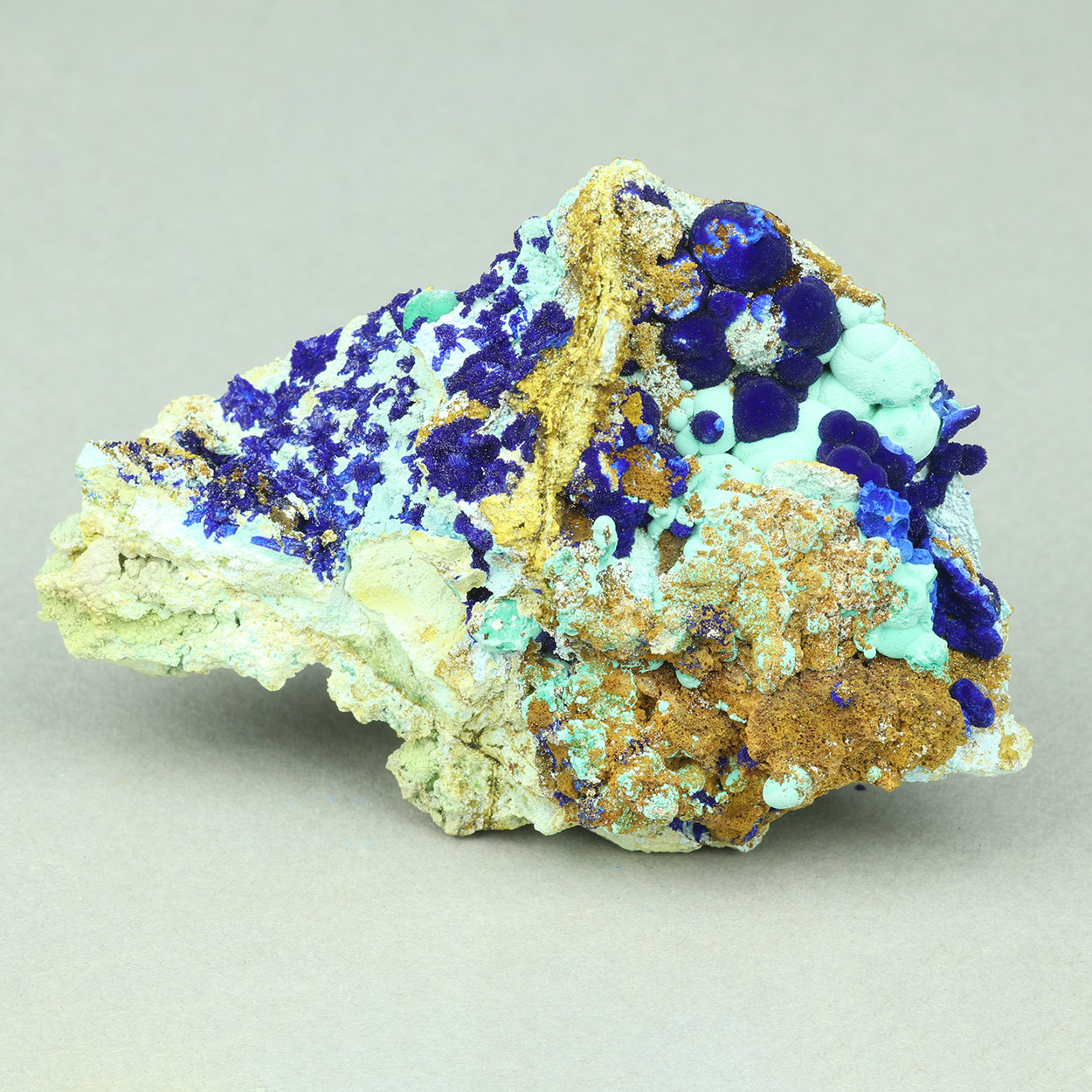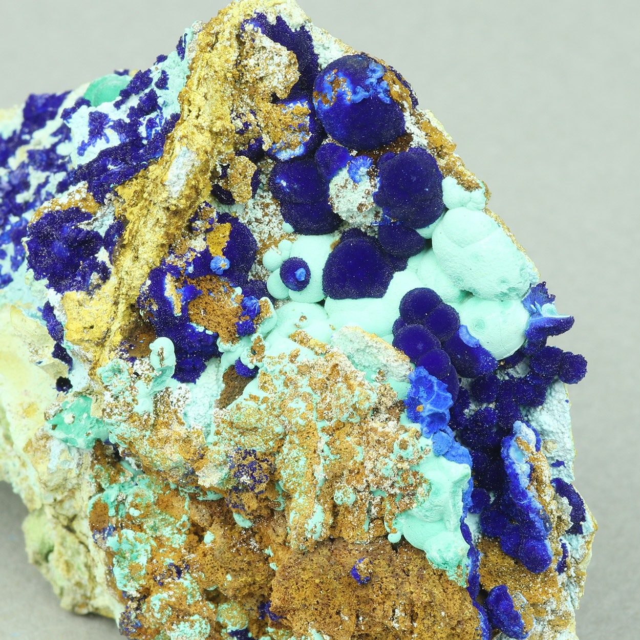 Fine combo piece, rich in crystallized blue azurite with contrasting light green malachite. Beautiful specimen from a find of May-June, 2025.