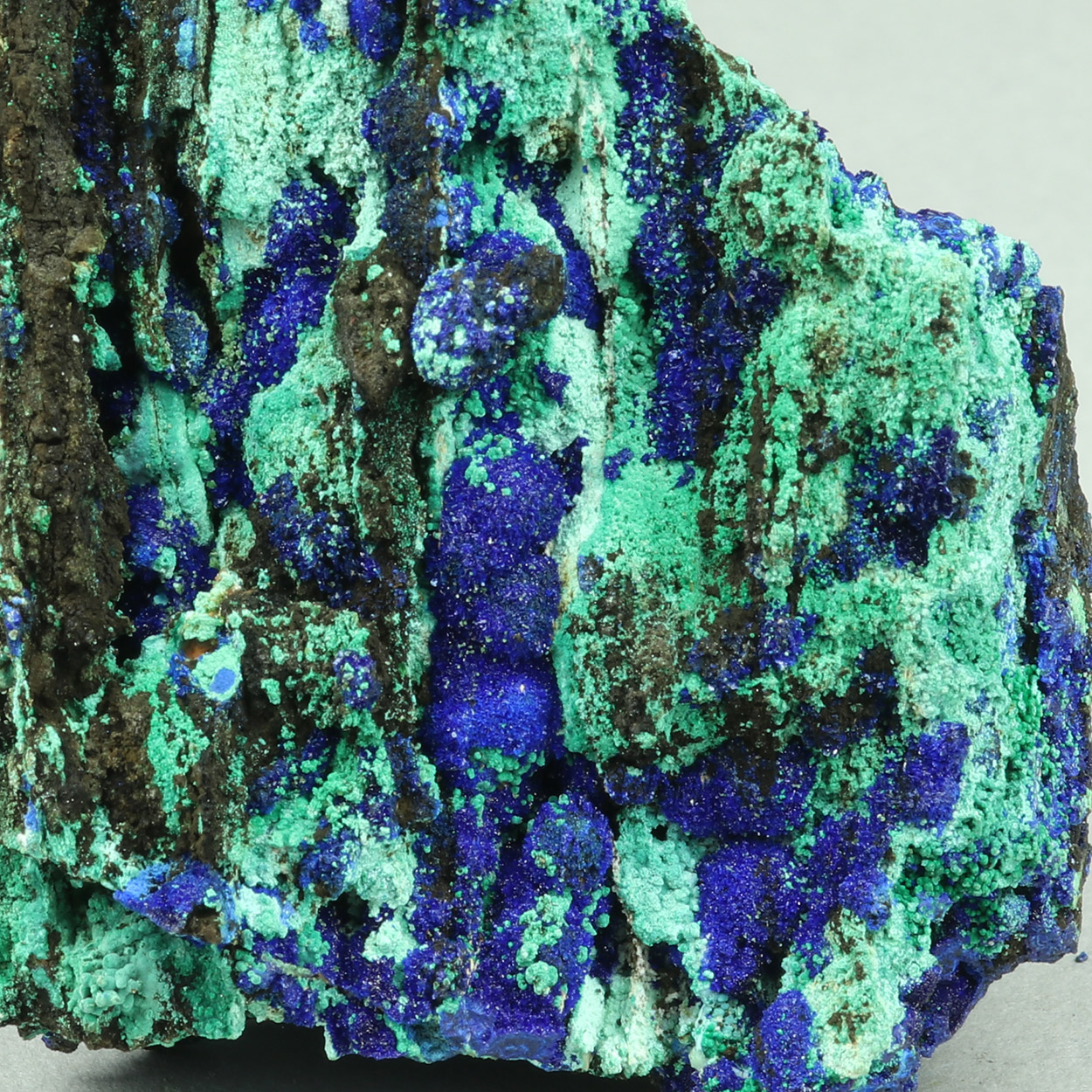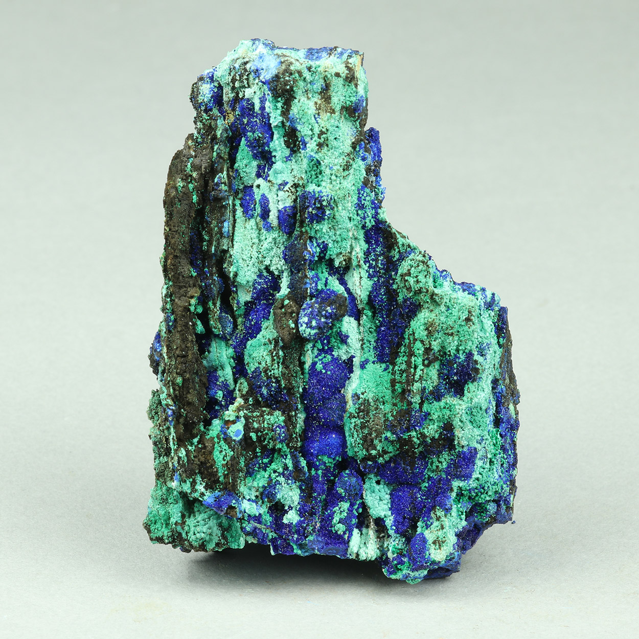 Good and well sized specimen with an excellent combination of blue azurite on contrasting green malachite. Beautiful piece from a find of May-June, 2025.