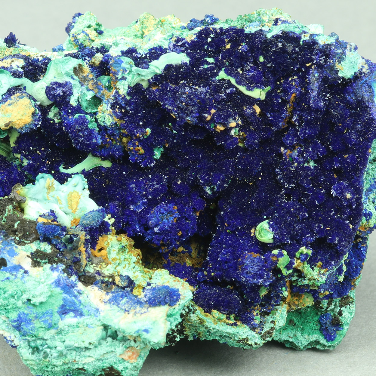 Rich piece with crystallized azurite and contrasting light green malachite. Beautiful specimen from a find of May-June, 2025.