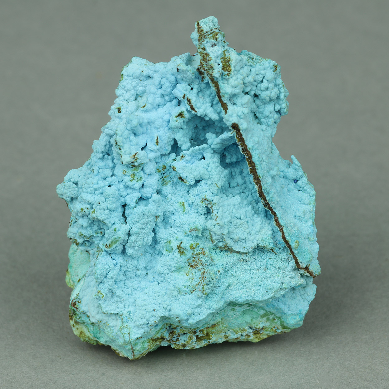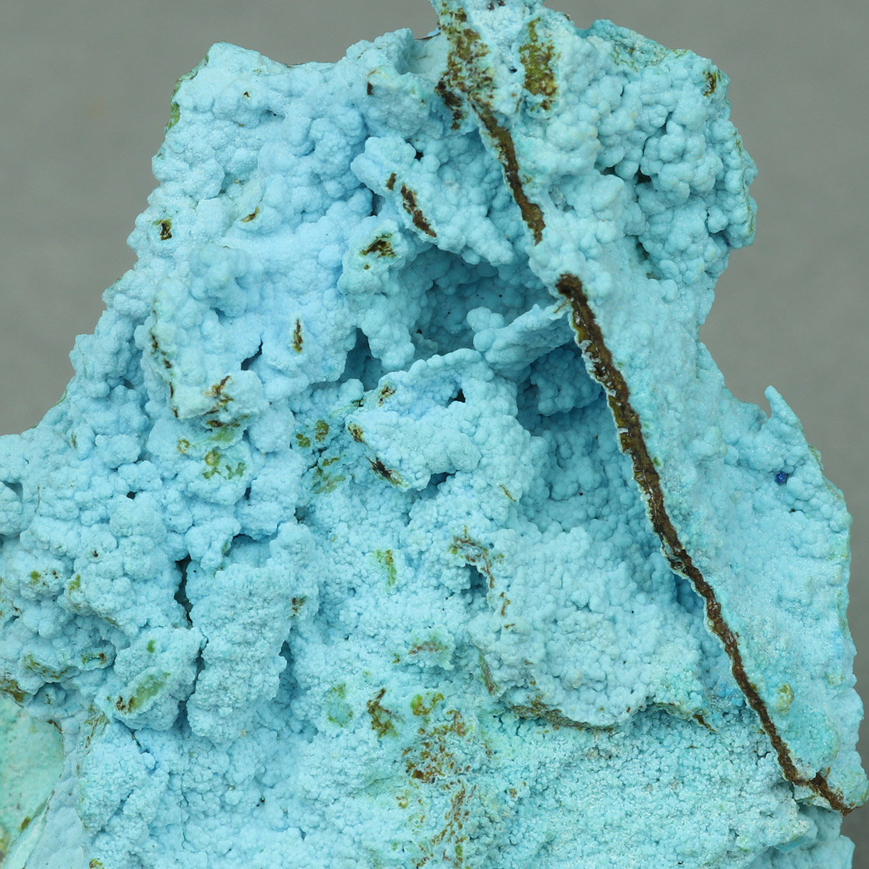 Chalcoalumite is a rare Copper Aluminum Sulfate mostly known from the US. This is analyzed and comes from Lavrion, in light blue color, from a recent find of azurite and malachite. This is an excellent, rich example.
