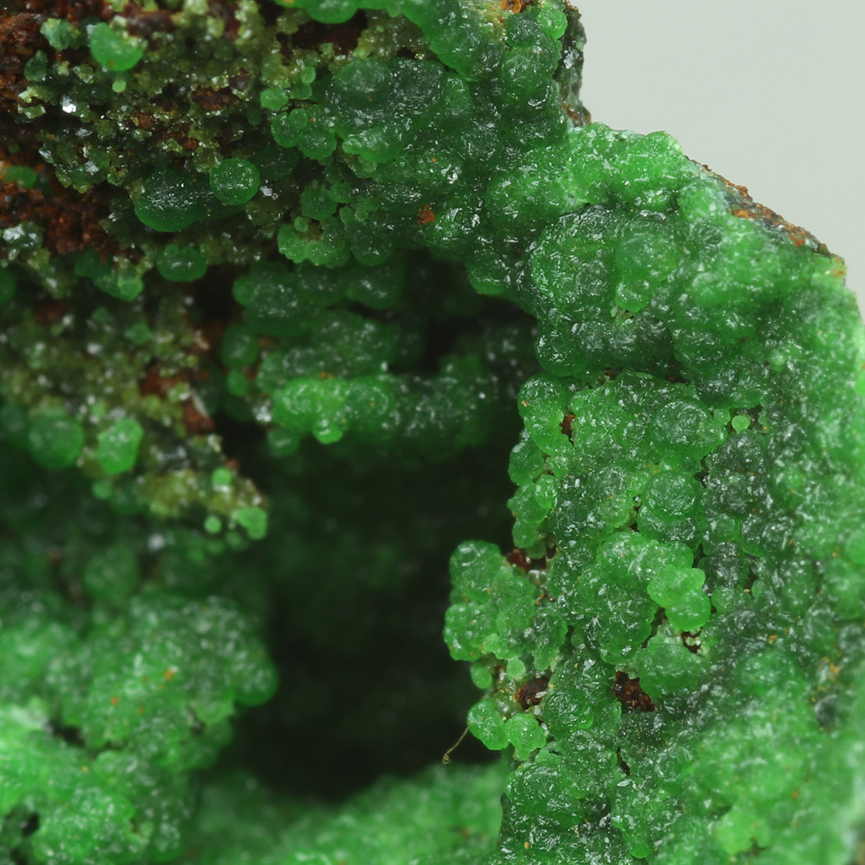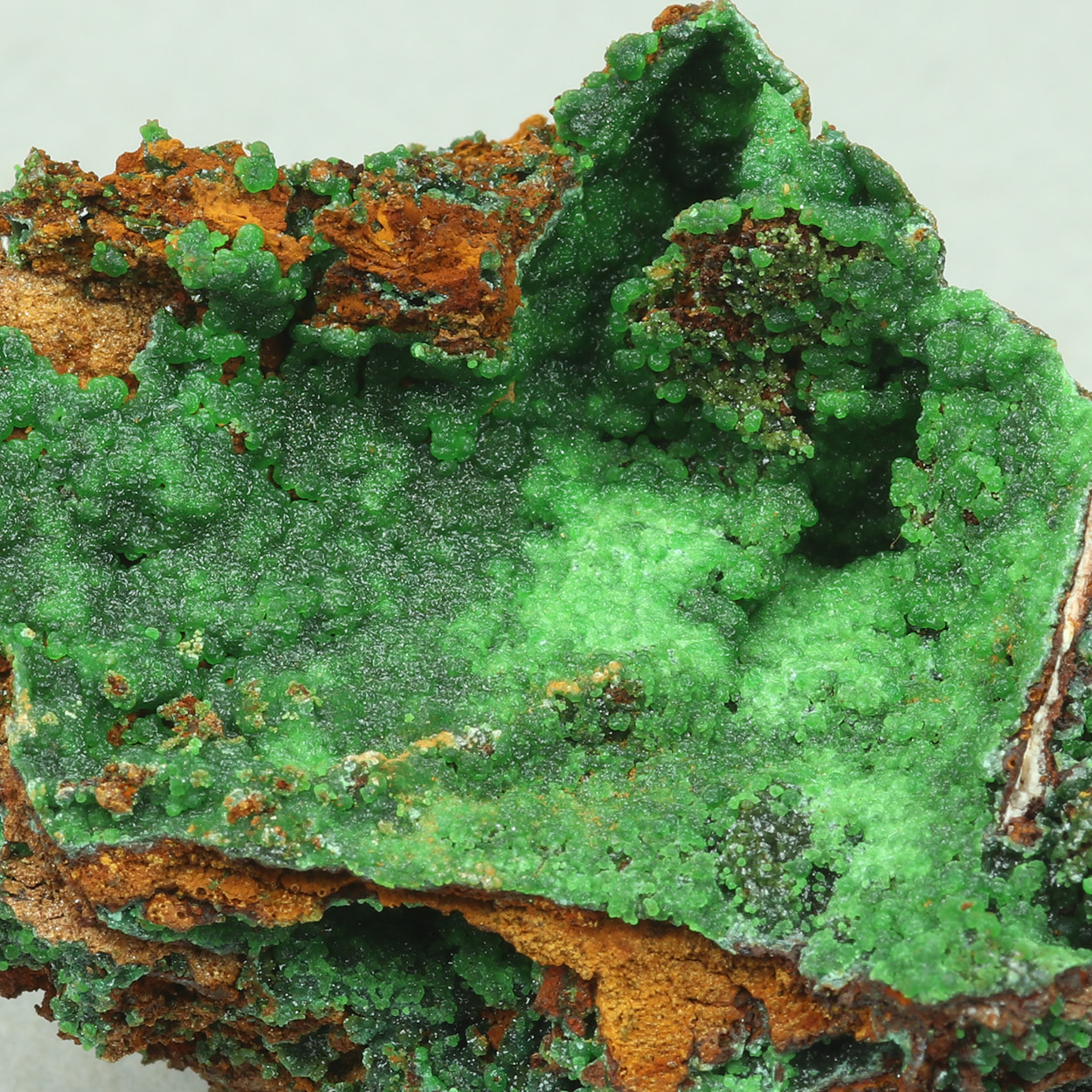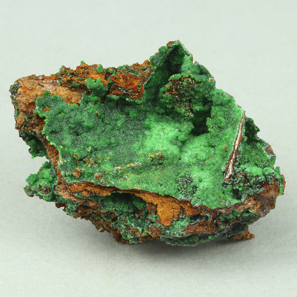 Neon-green spheres of conichalcite on matrix. A fine example of the species from Lavrion.