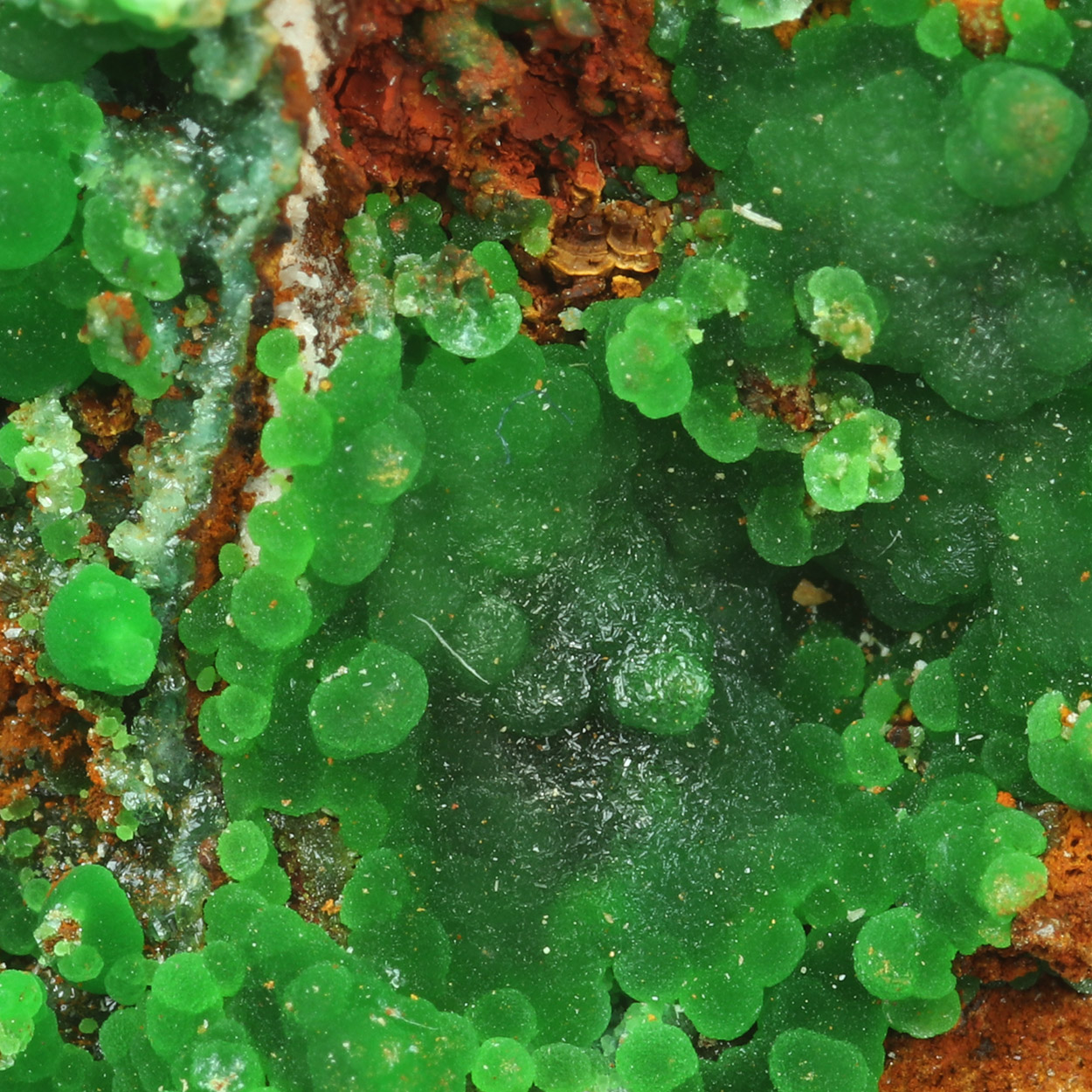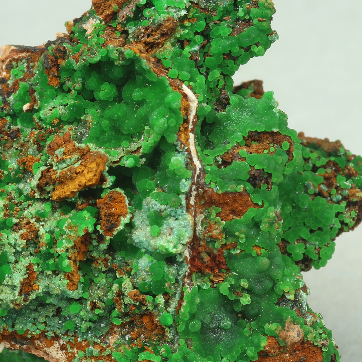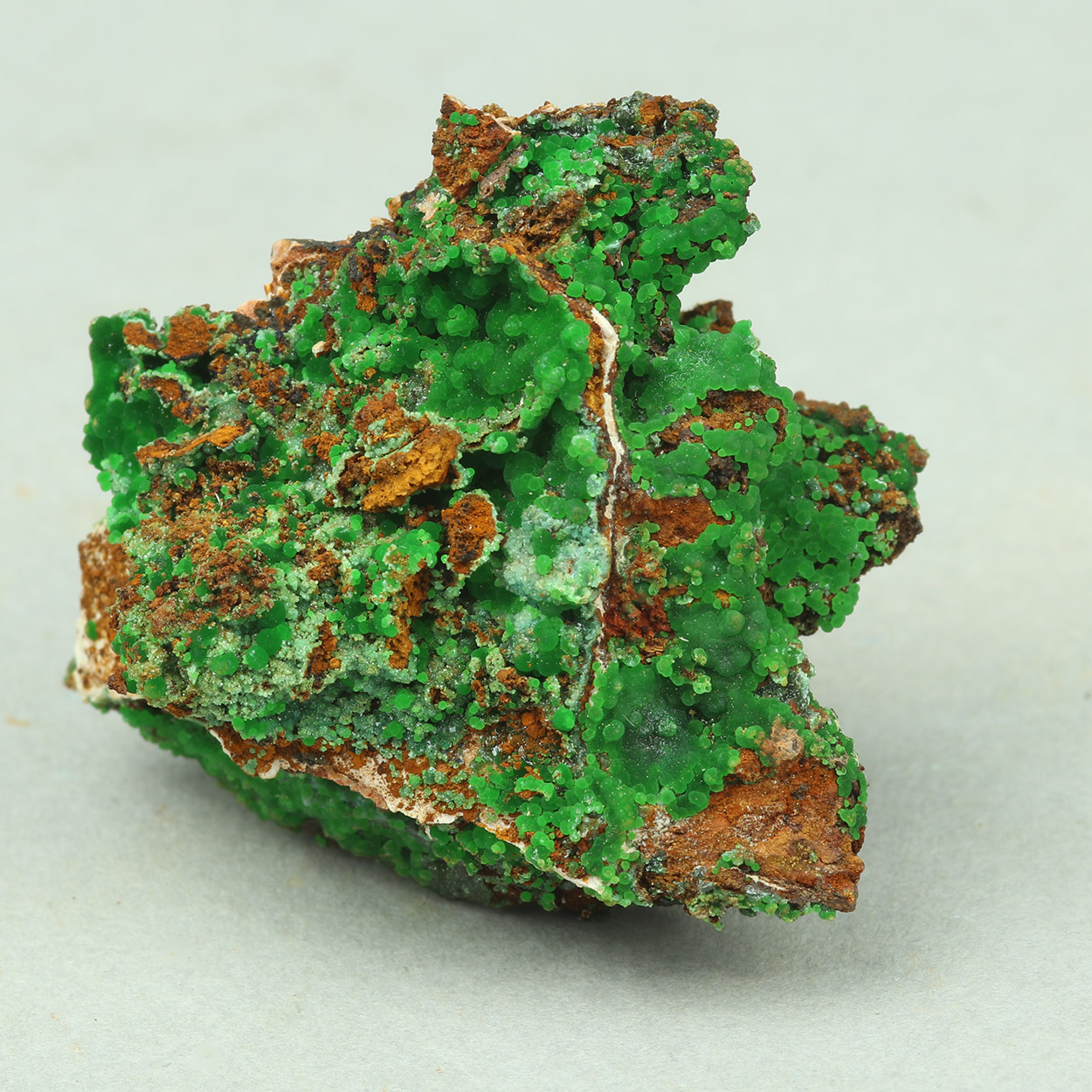 Neon-green spheres of conichalcite on matrix. A fine example of the species from Lavrion.