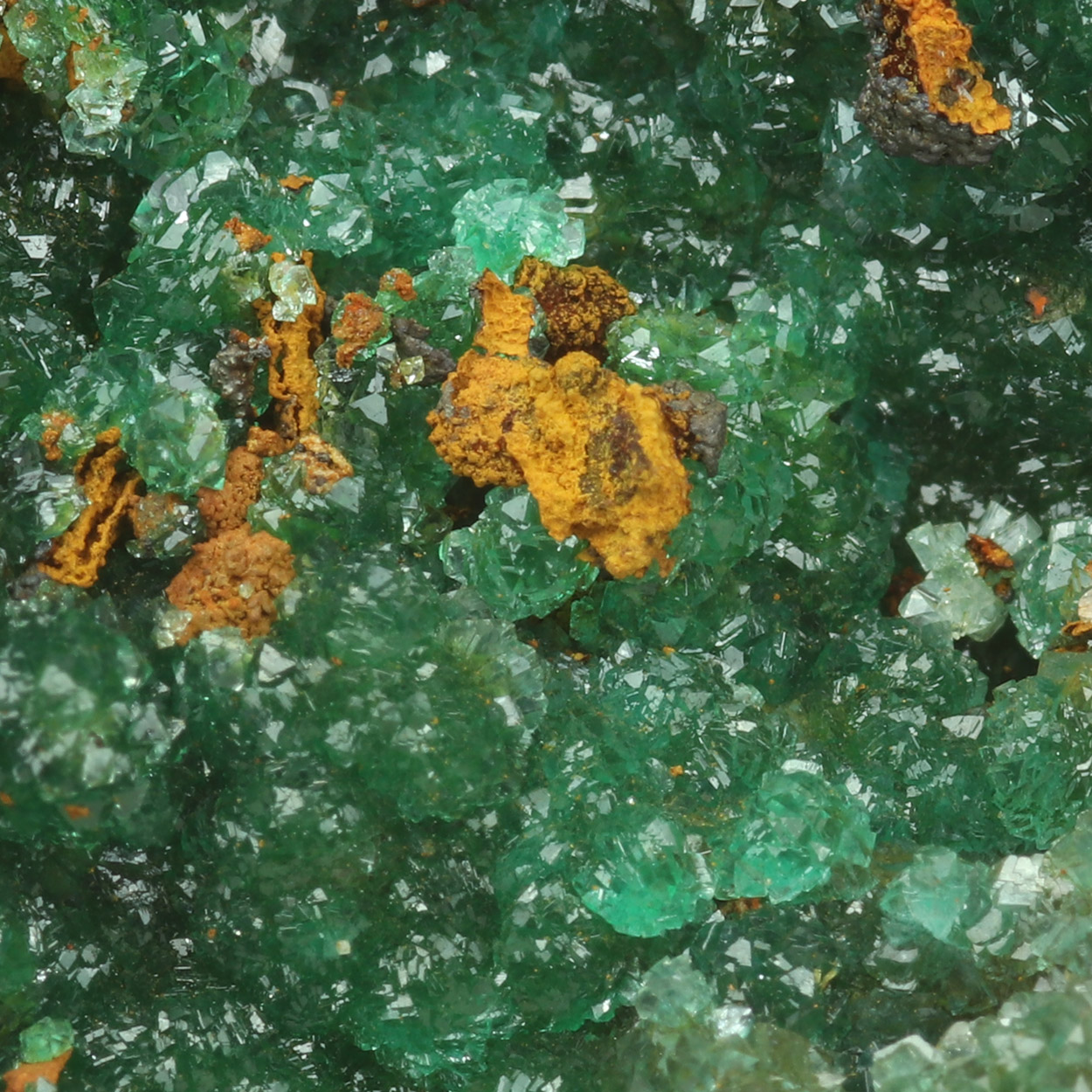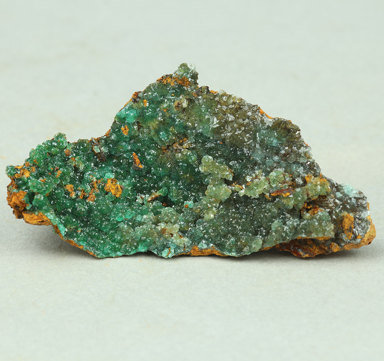 Gemmy, lustrous, green crystals of cuprian adamite on matrix. A classic Lavrion adamite specimen from a recent find.