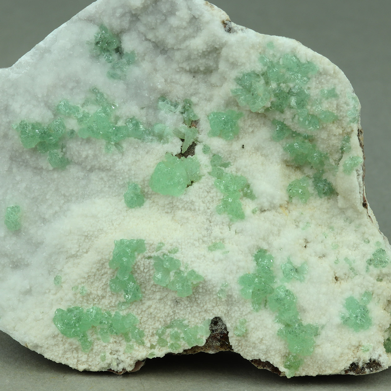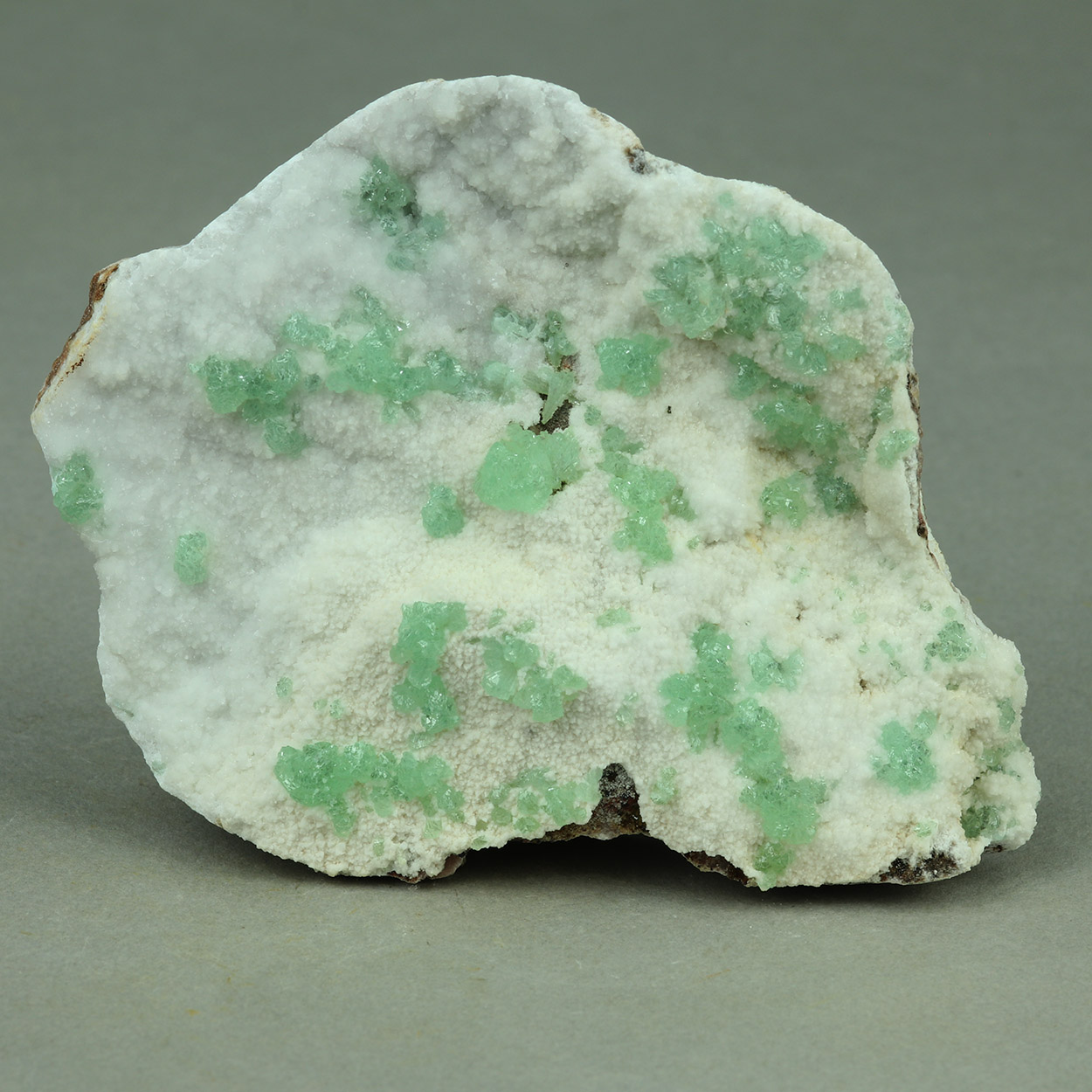 Here is a wonderful Lavrion adamite specimen. The adamite is cuprian and has a very unique teal color, it is gemmy and lustrous and sits on contrasting white calcite.