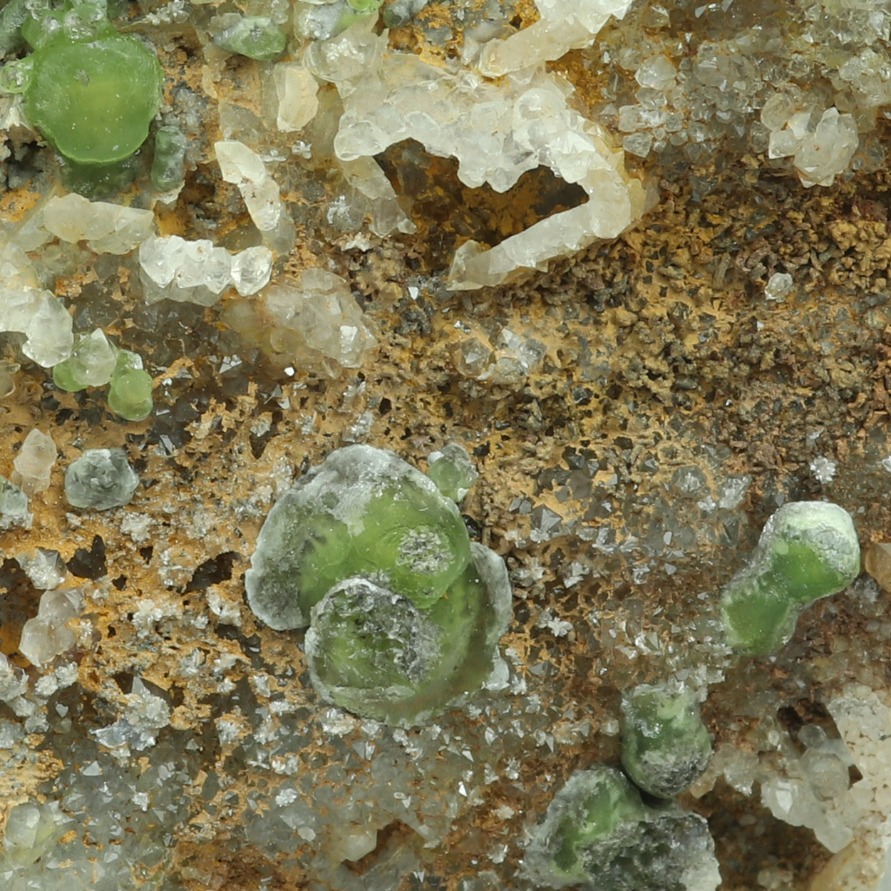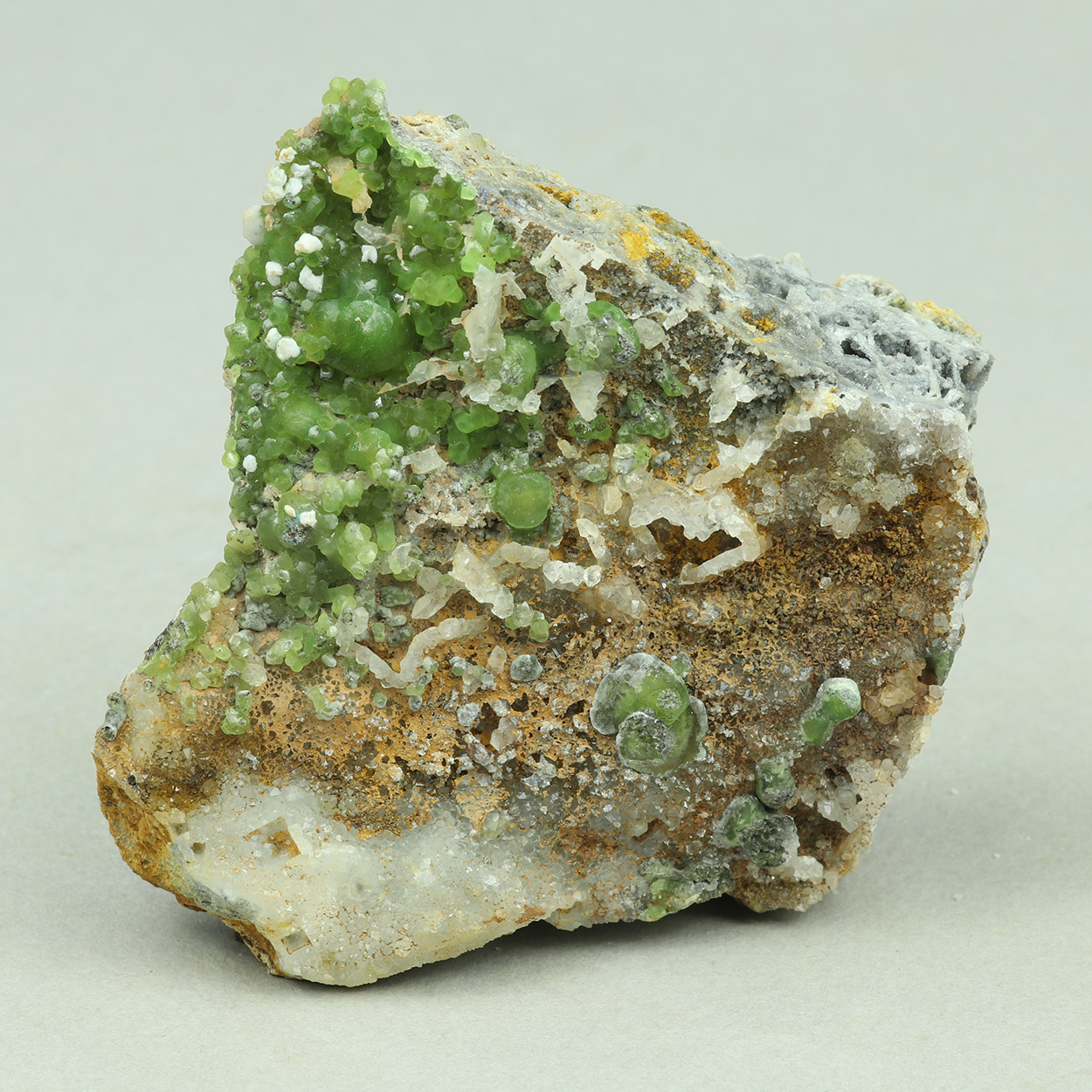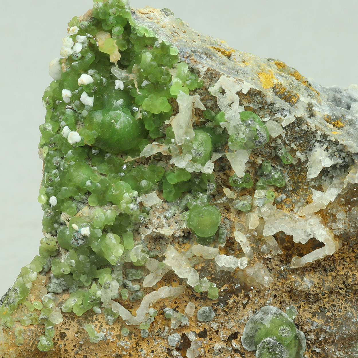 Gemmy and lustrous crystals of green, cuprian smithsonite on matrix. An excellent smithsonite specimen from Lavrion.