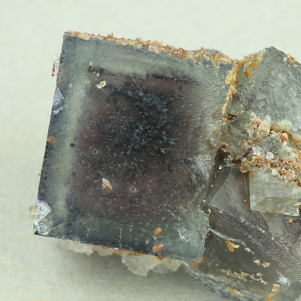 This small find produced some very interesting fluorites. They show phantoms and metallic inclusions (sphalerite?). The color zoning is beautiful and better seen in person, with a little bit of backlighting.