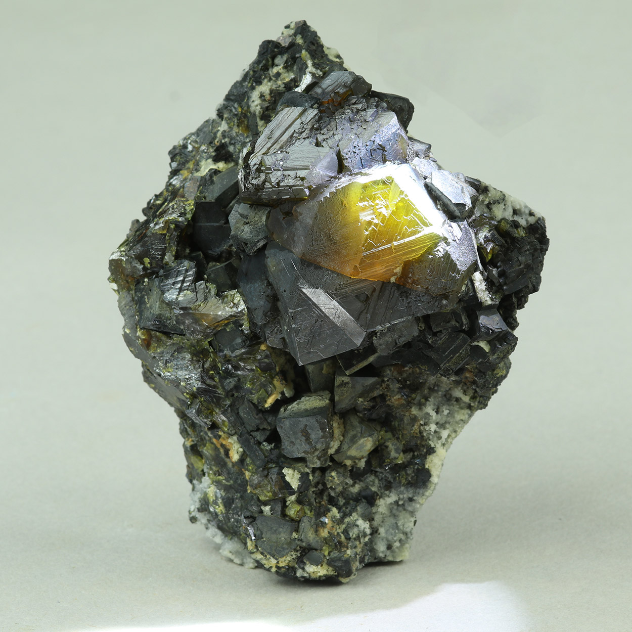 An enormous crystal of gemmy cleiophane is undamaged and on matrix! It is extremely rare to get such a big, gemmy crystal of cleiophane on matrix as they are usually less than 1cm across. This is a monster for this variety of sphalerite! With a regular flashlight or even your phones flash, the crystal glows.
